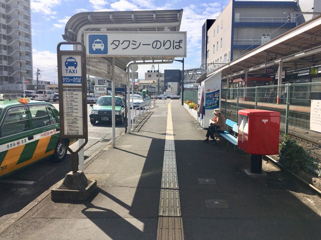 ①南口(改札出て右側)を降り、線路を右手にまっすぐお進みください